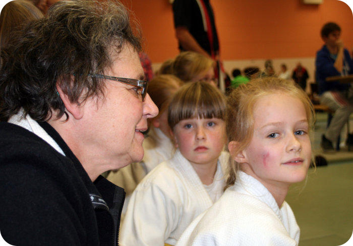 Ebenso wie Max und Bärbel hatte sich Emelie auf den 1. Dan vorbereitet. Jedoch war erst im Juni die vorgeschriebene Wartezeit vorüber.