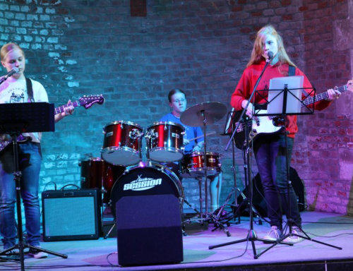 Caroline und Dorothea Scherer mit selbst gedichteten und komponierten Liedern musikalisch umrahmt.