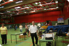Während viele Judokas wie Ameisen in der Kette die Matten transportierten bauten die Anderen die Cafeteria auf.