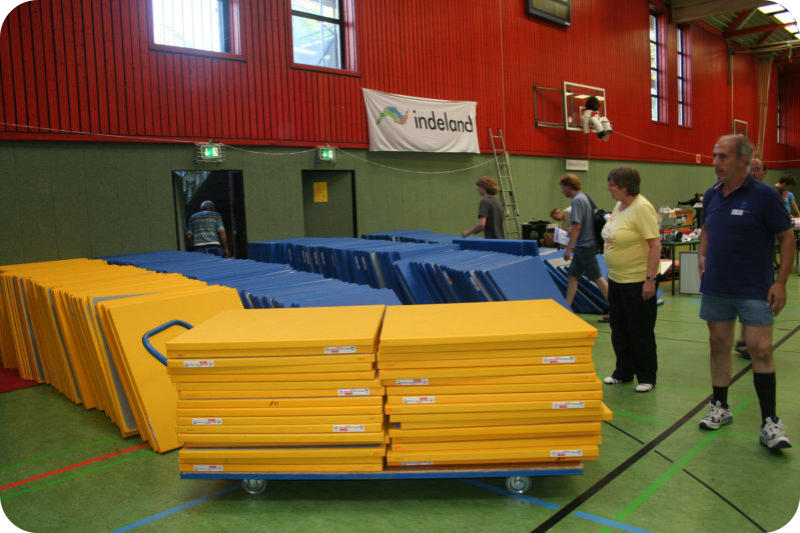 Beim Tragen der Matten, beim Ärgern über die Bauarbeiten, beim Schleppen unzähliger Cafeteria- und Turnierausstattung.