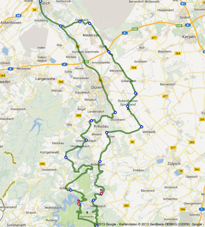 Rückfahrt dann wie gewohnt außen um Düren herum.