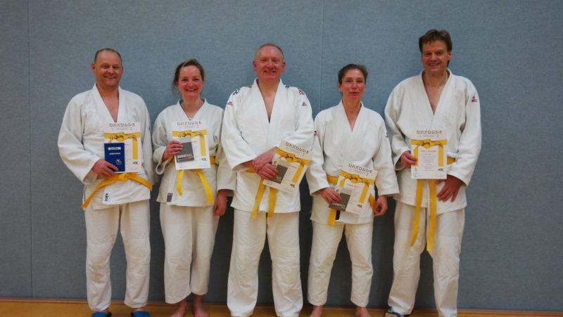 Träger der neuen Gürtelfarben im Jülicher Judoclub.