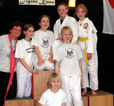 Die Teilnehmer am Rheinland Kyu-Cup in Setterich der Wettkampfklasse I (bis oranger Gürtel)