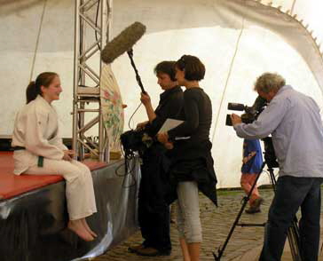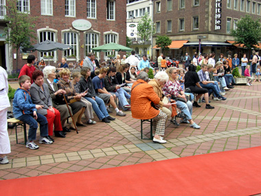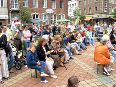 Wahlsonntag, für uns die dritte Vorführung. Harte Pflastersteine, aber hautnah am Publikum. |